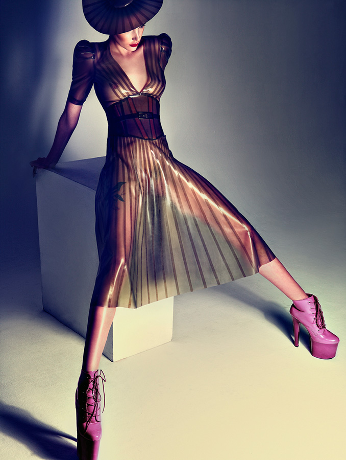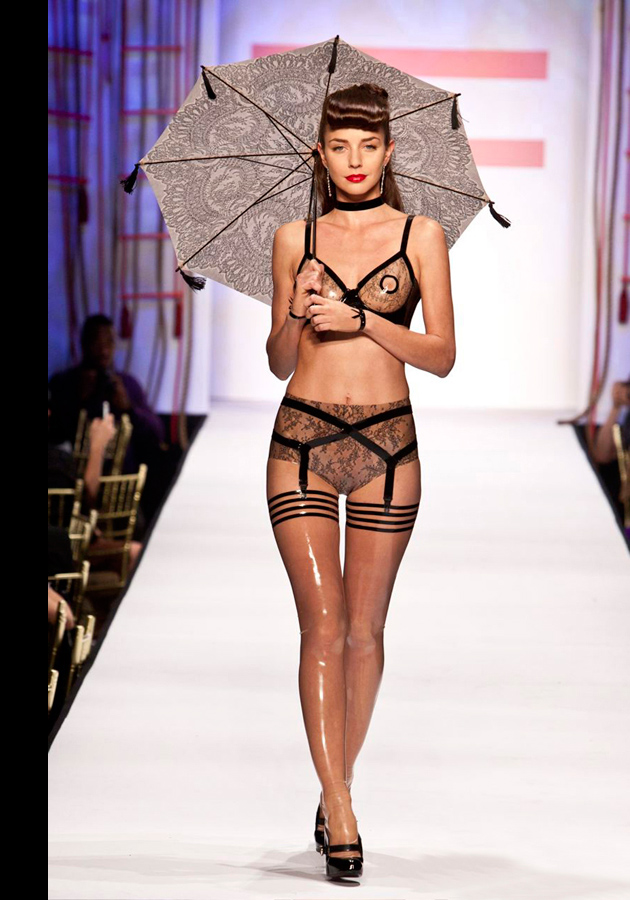 Atsuko Kudo's debut runway show at Lingerie New York October 21st 2010, Cipriani's 42nd Street. Atsuko presented an entirely new collection for the New York show and was (as far as we know) the first entirely latex full scale runway show anywhere in the world. Crystal Renn completed the show walking champion poodle Nightfall.