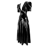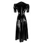 The dress has a midi length fully flared skirt and fastens to neck height with a zip.