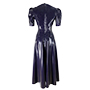 The dress has a midi length fully flared skirt and fastens to neck height with a zip.