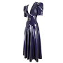 The waspie has a decorative steel buckle at the front centre and the body is complimented by flattering mid length fitted puffed sleeves.