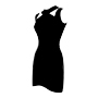 A unique spin on this mini dress features a sleeveless design with a unique focus point created by angular cut outs over the shoulders.