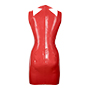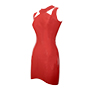 A unique spin on this mini dress features a sleeveless design with a unique focus point created by angular cut outs over the shoulders.