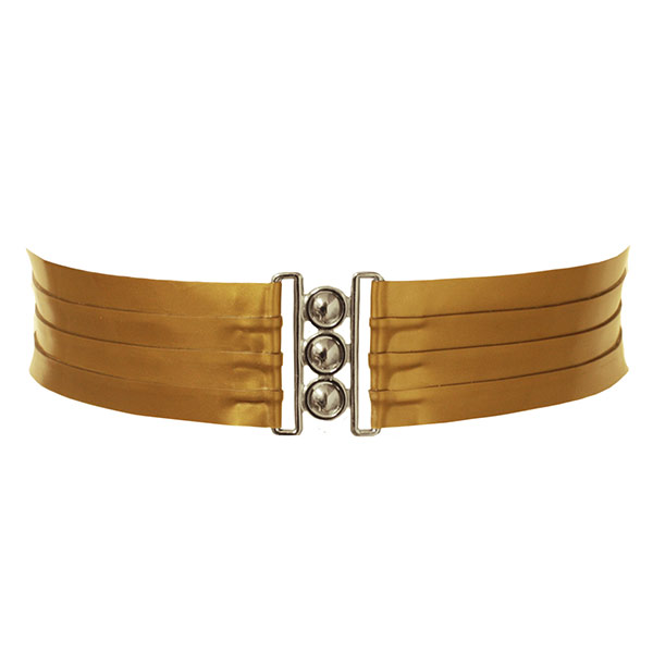 This slim waist belt features a unique layered effect and fits with a steel clasp.