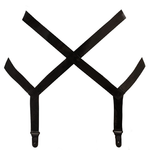 This suspender belt features front and back crossover straps that create a very fashion forward piece.