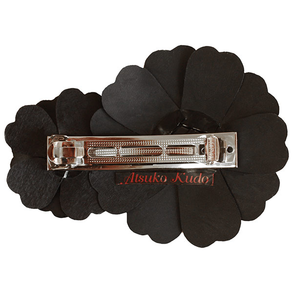 This hair piece measures approximately 12cm across and fits via a barette clip.