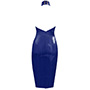 It fastens with two poppers at the back of the neck and hidden rear zip, making this a virtually backless dress. It also features a rear split in the skirt.