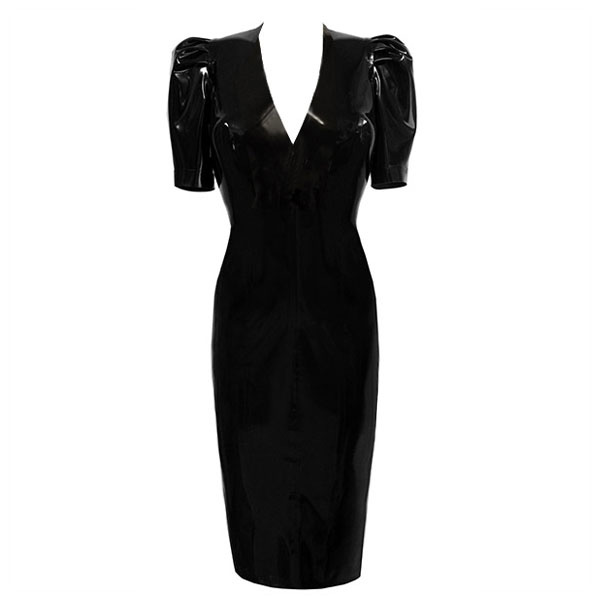 This beautiful classic dress features a short v shaped neckline which is complimented by flattering mid length fitted puffed sleeves.