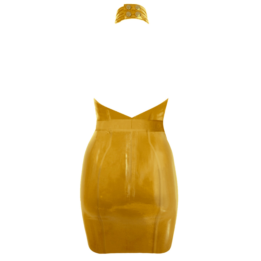 It fastens with two poppers at the back of the neck and a hidden rear zip, making this a virtually backless dress.