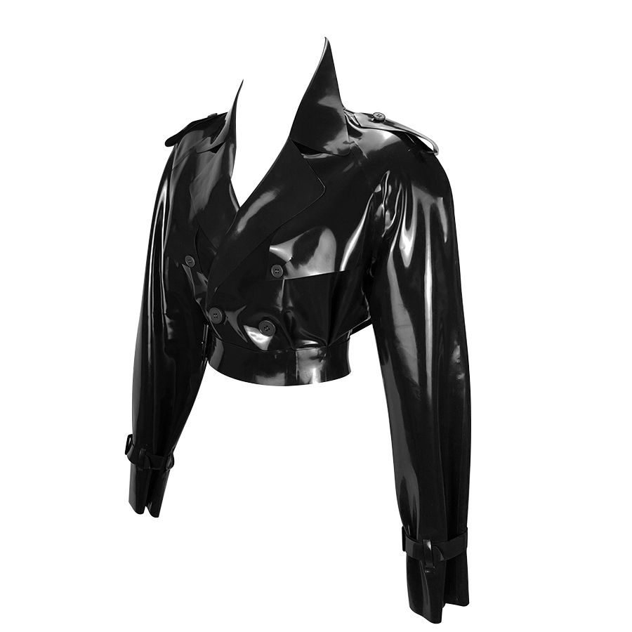 This stunning trench jacket has all the features of this classic design, in latex!