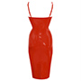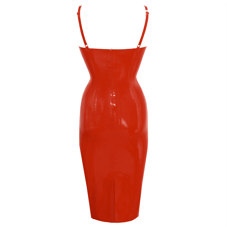 The dress sits at knee length and has a split at the centre back for ease of movement. It has fully adjustable shoulder straps and fastens with a zip to the rear.