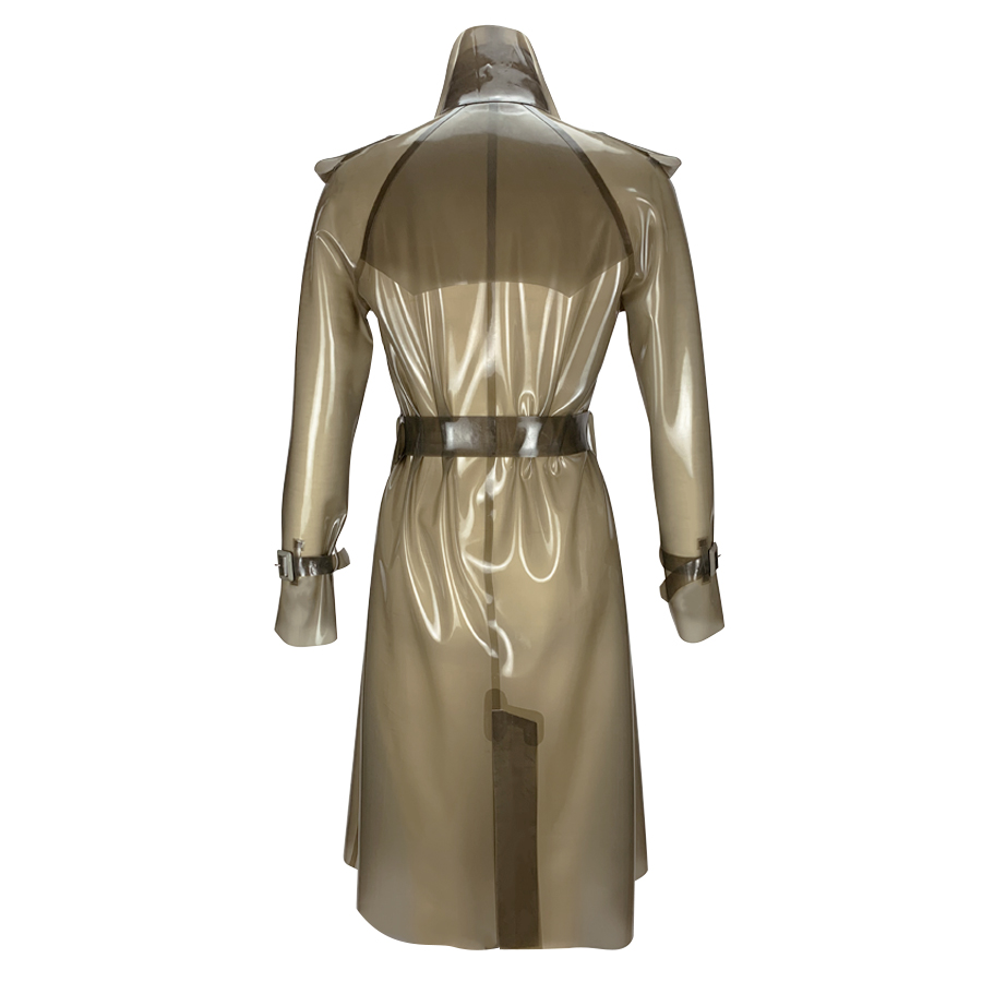 This stunning trench coat has all the features of this classic design - rendered in latex.
