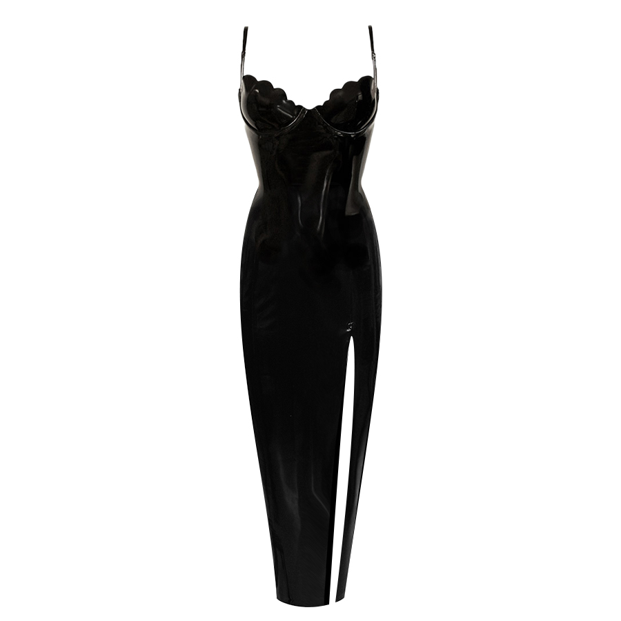 This long length evening dress features a very flattering built in cup designed to provide eye catching uplift as well as great support.
