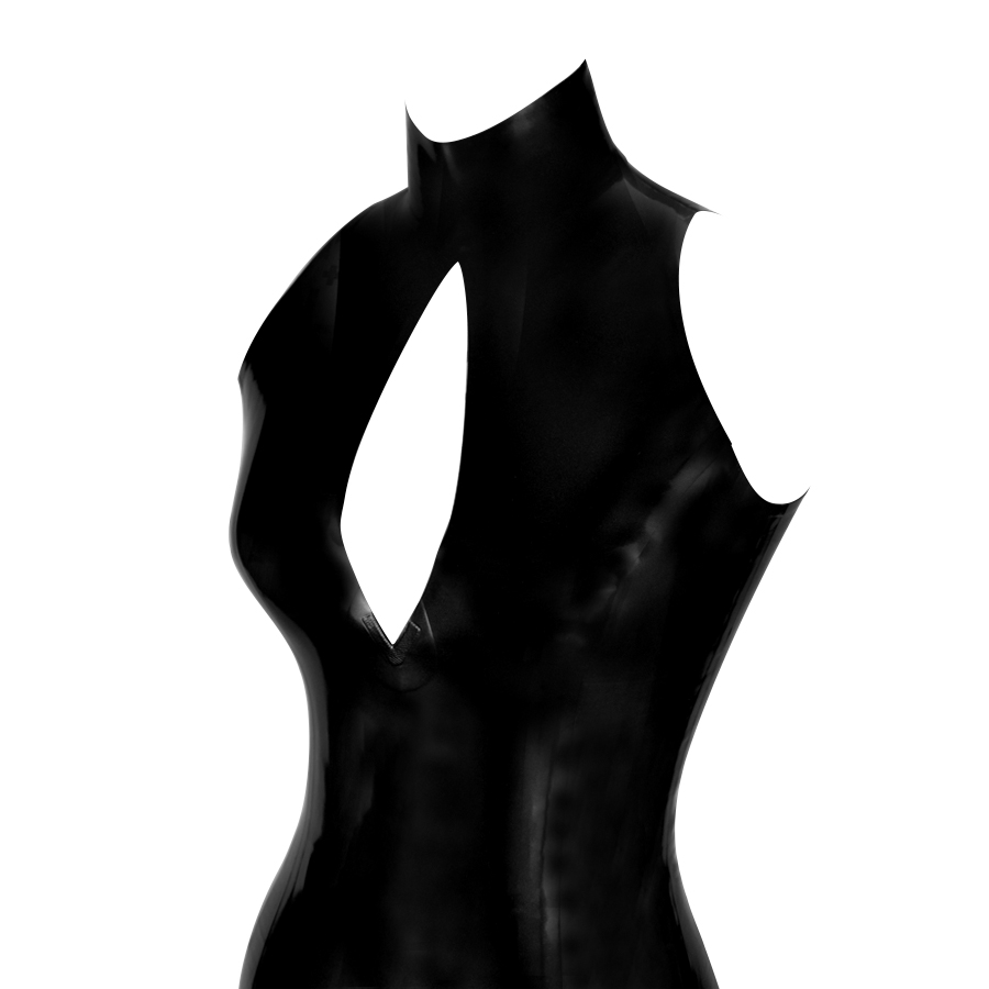 This stunning mini dress with a no shoulder design and a high neck is cut to complement every curve.