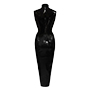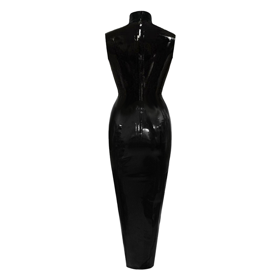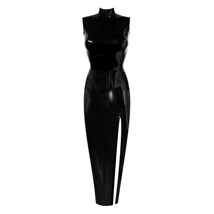The dress fits at the back with a hidden long zip and features a seductive side slit.