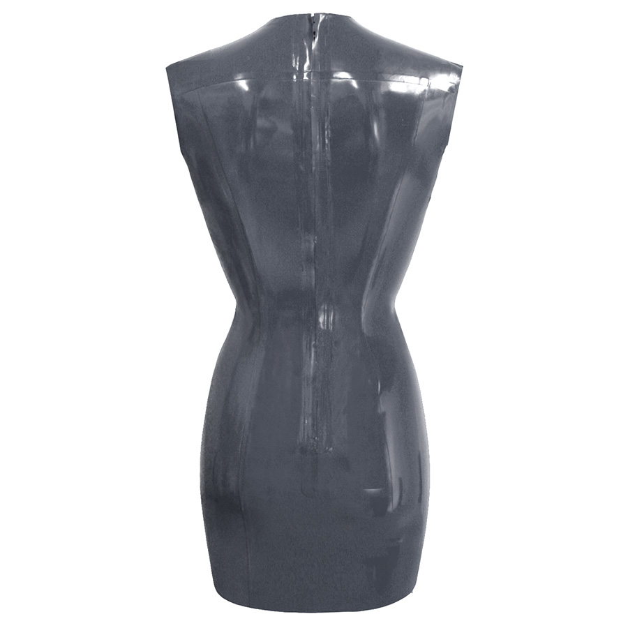 The dress has a gentle curve on the hem and fits with a long zip fastening up the back to neck height.