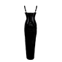 The dress fits exactly to the body contours and fastens mid back height with a zip and features adjustable straps.