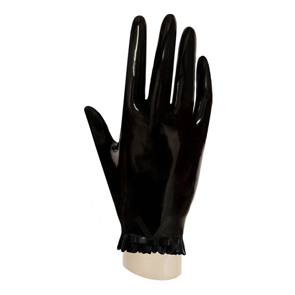 These perfectly moulded gloves fit at the wrist and are complemented with a decorative frill trim and bow.